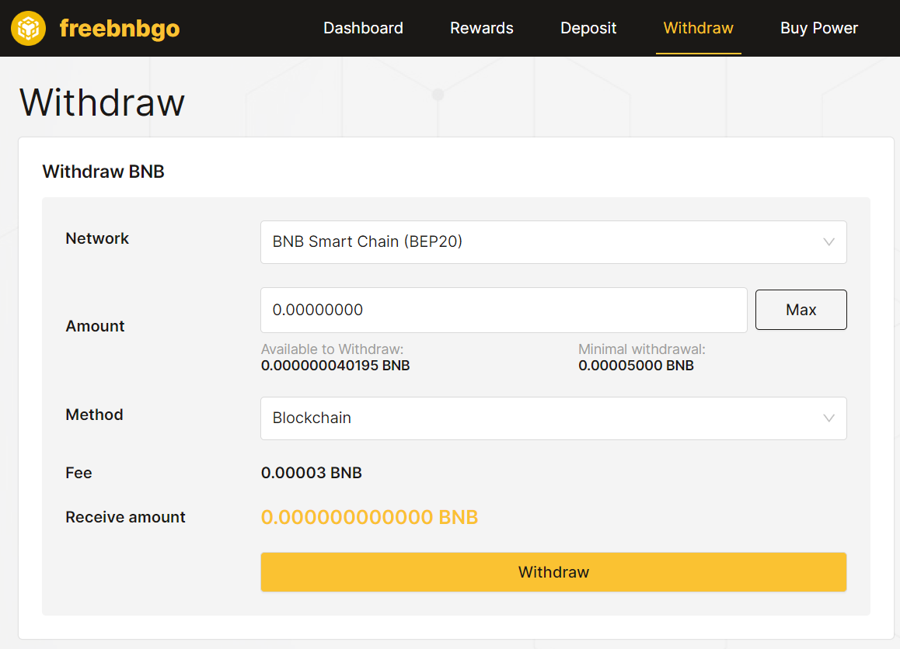 Once you are familiar with the site, you will need to make a quick deposit for BNB Mining.
