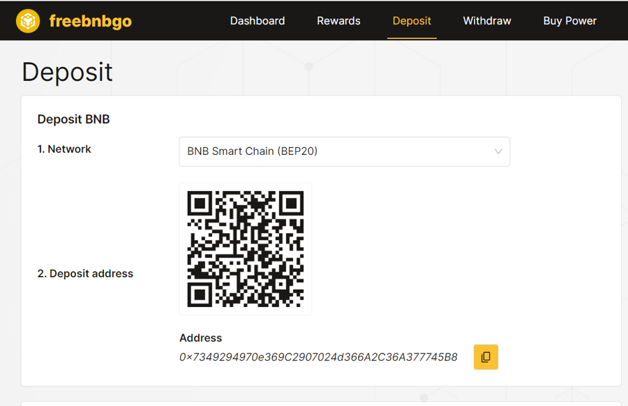 If you deposit money into FreeBNBgo.net to buy a free bnb mining speed booster package, please only deposit BNB coins. Our system does not support other currencies such as USDT,... We are not responsible if you deposit and do not receive money in your account.